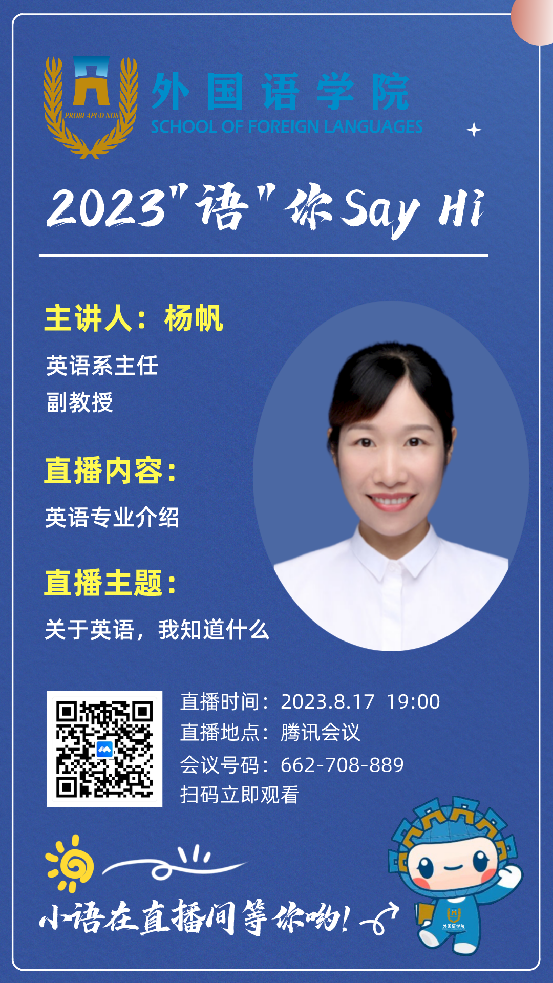 杨帆,英语系主任,副教授,从事英语教学工作十余年。主要研究方向为翻译理论与实践。承担《高级英语》课程教学工作。近年来,主持福建省本科高校教育教学改革项目;在本科学报及以上刊物公开发表论文十余篇;出版专著1部;主编或参编教材7部。指导学生参加各类英语竞赛,多人次获奖。
