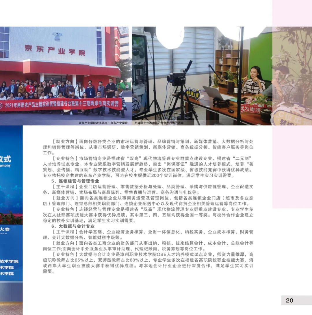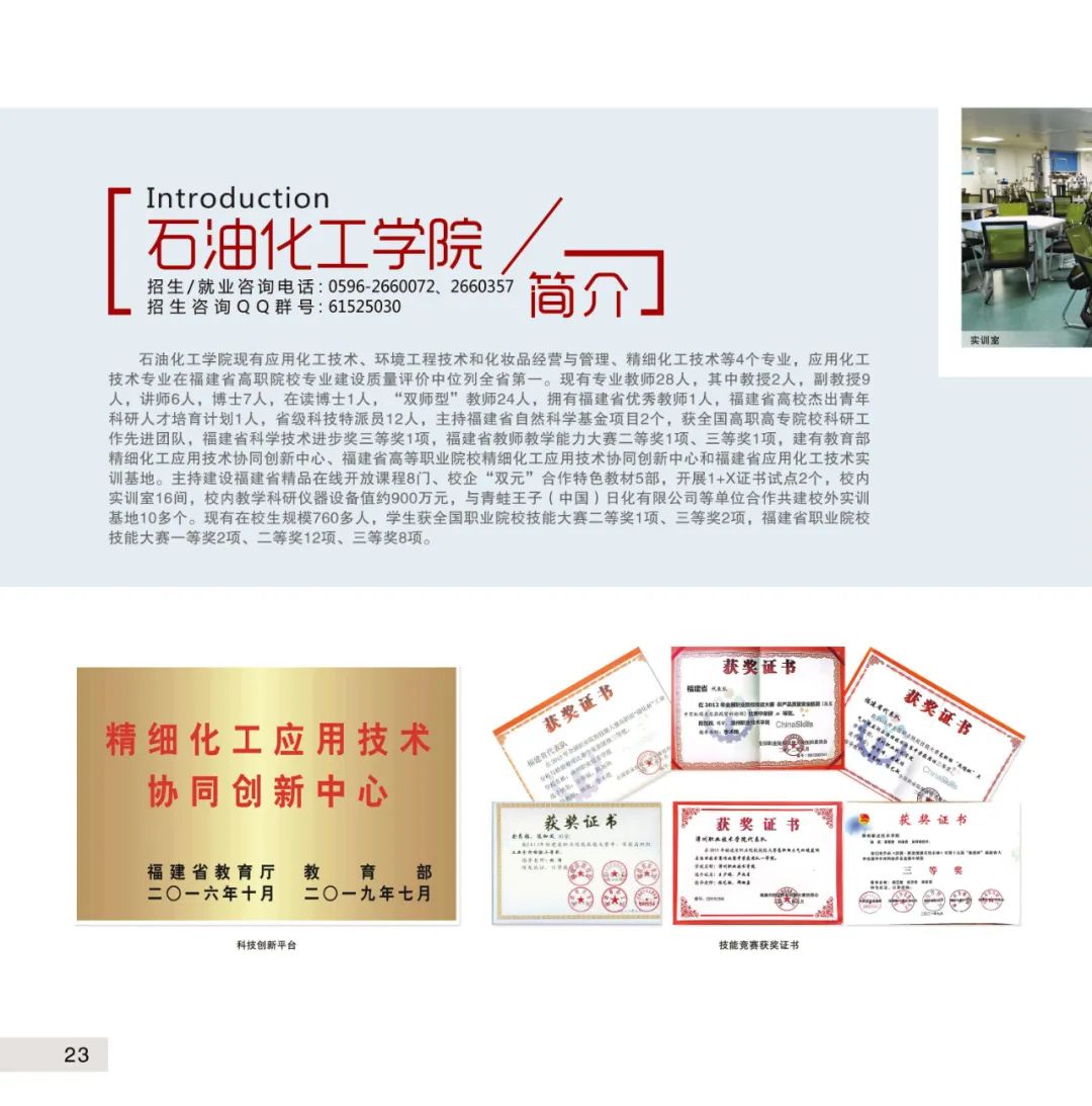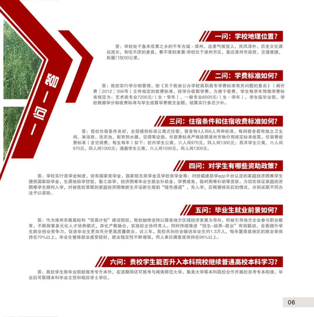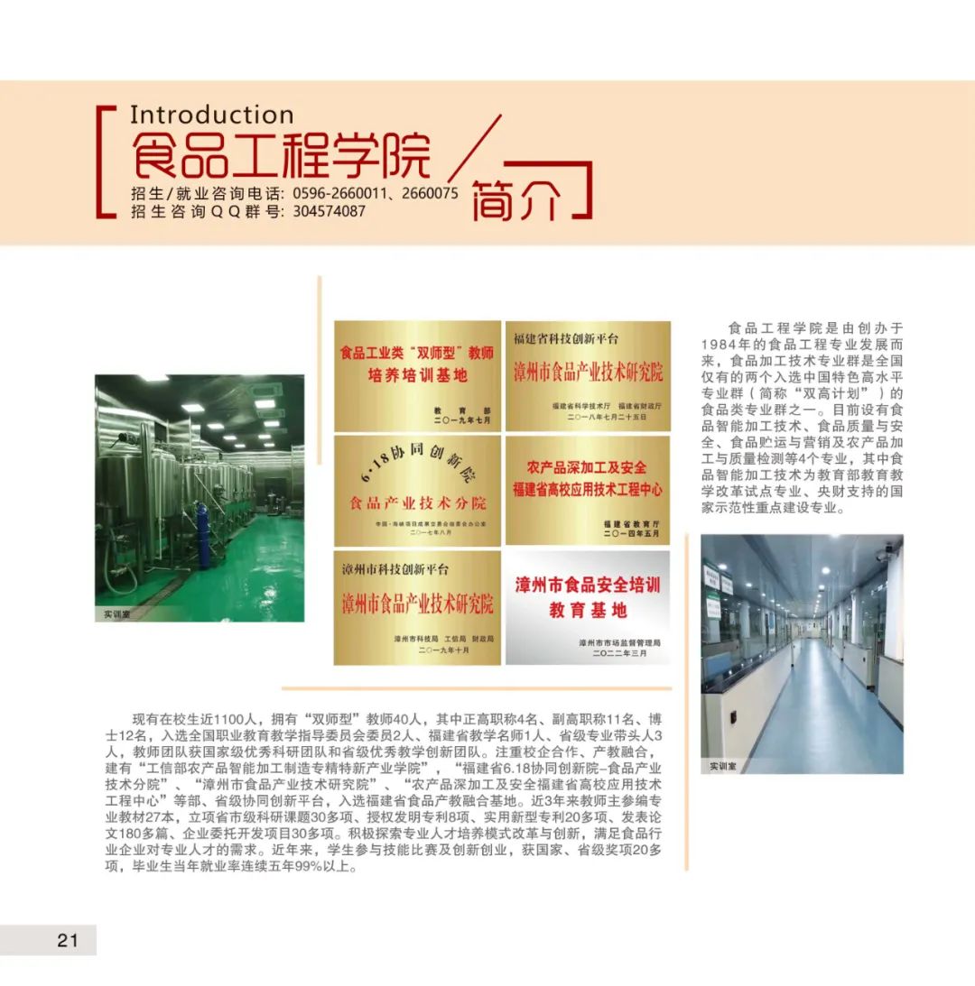 点击下方"链接"了解更多信息!漳州职业技术学院2023年普通高考分省分专业招生计划(附我校2022年福建省普通高考录取分数线)漳州职业技术学院2023年普通高考招生章程@考生 相约漳职院 共筑未来梦学院风采---“经”世致用,“管”奏华章|经济管理学院学院风采---崇责覃械 匠心融智 | 智能制造学院学院风采---向阳而生 追求卓越|文化旅游学院学院风采---EI引领时代 畅游无限未来 | 电子信息学院END