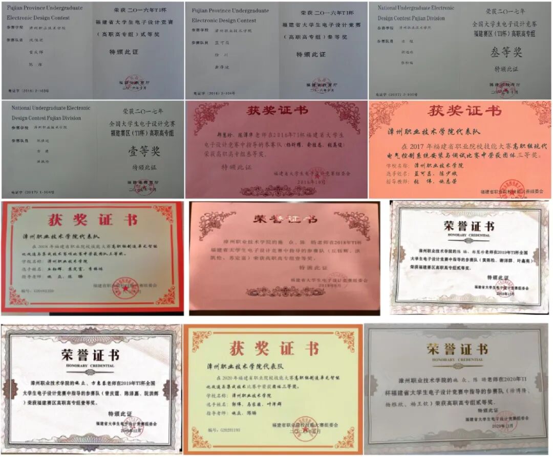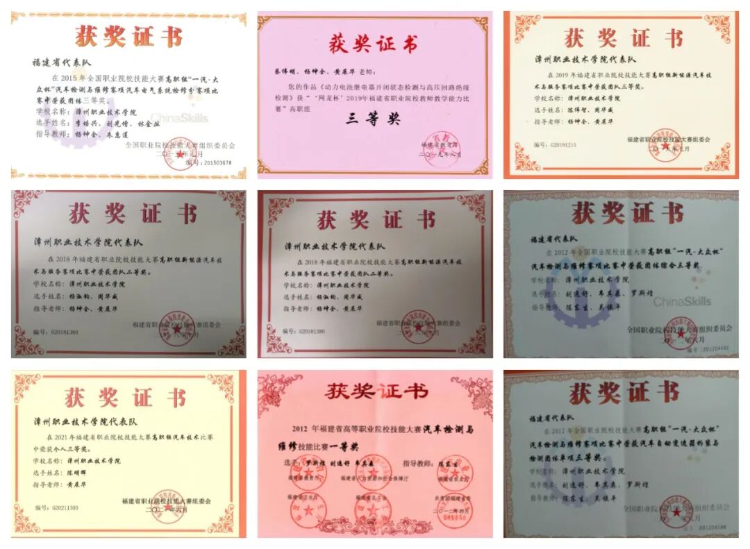 ▲学生参加技能竞赛获奖证书列举(滑动查看)