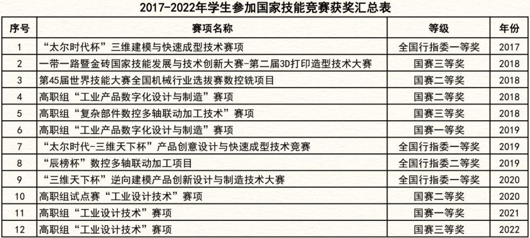 ▲学生参加技能竞赛获奖情况列举