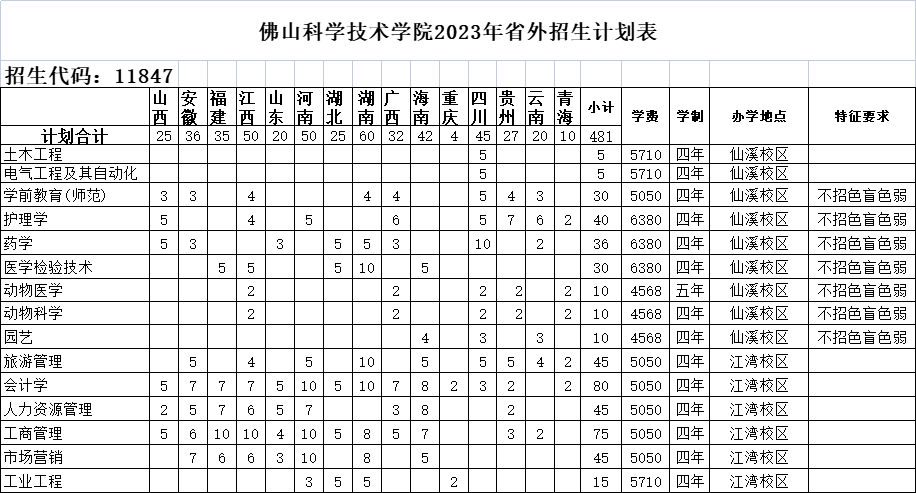 2023年佛山科学技术学院普通本科招生总计划数为4438人(含预留计划),其中广东省招生计划数为3913人,外省招生计划数为481人,另有预留计划44人。招生总计划数较去年增长9.36%,考生录取几率大幅提升!欢迎广大考生填报!