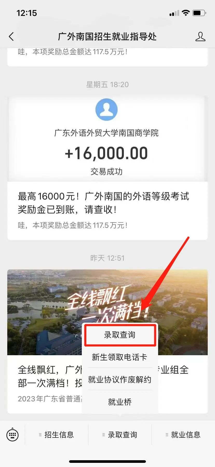 请在录取查询系统中