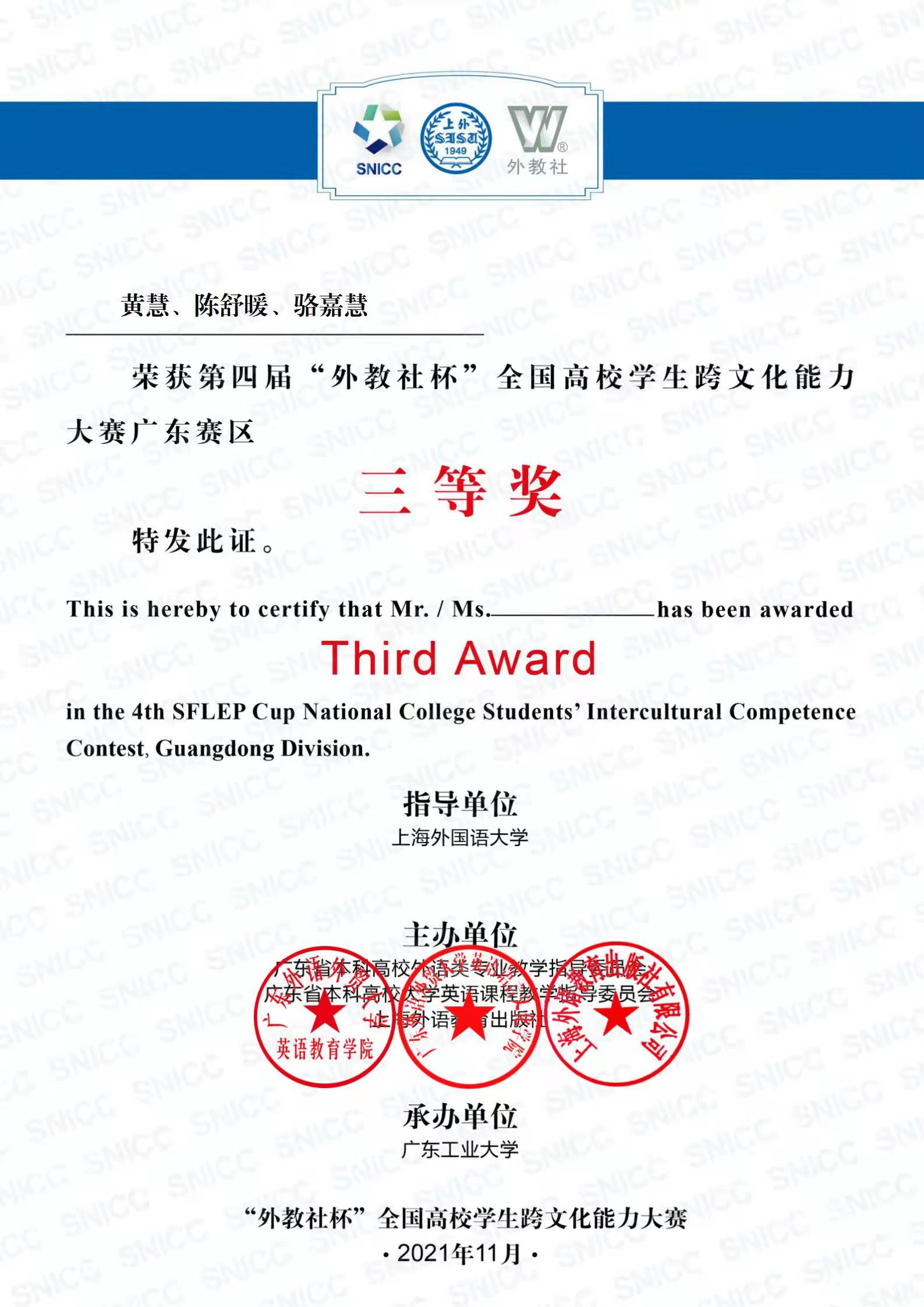 第四届“外教社杯” 全国高校学生跨文化能力大赛-黄慧,骆嘉慧,陈舒暖