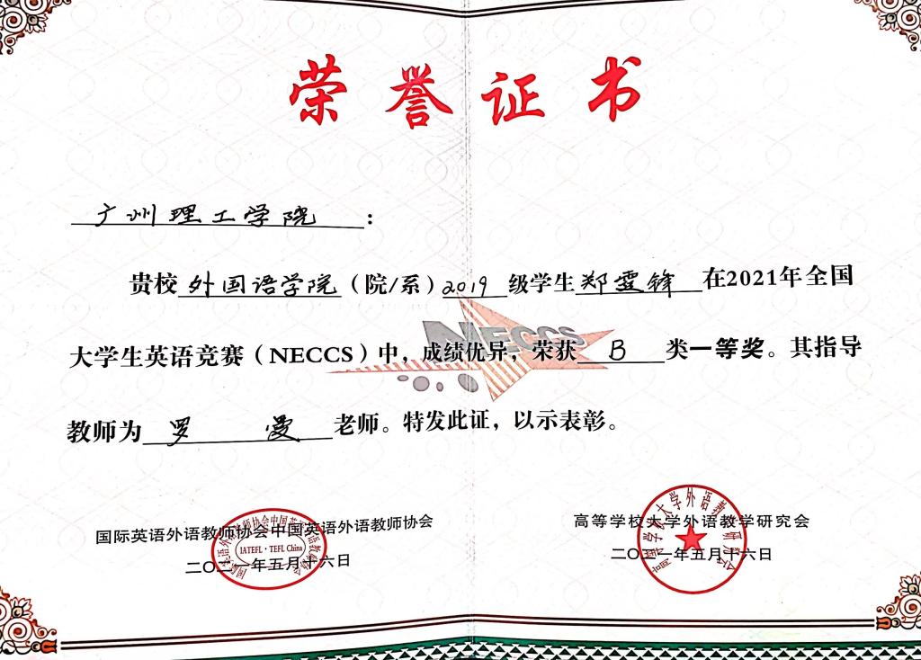 2021年全国大学生英语竞赛一等奖(郑霆锋)(指导老师:罗曼)
