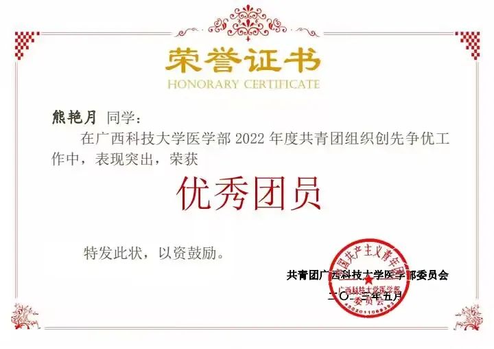 知不足而奋进,望远山而力行。熊艳月严于律己、心怀壮志,凭借自己坚强的意志和毅力跨越重重困难高峰,在学校里闯出了一片属于自己的小天地。在校期间,她2次被评为校级“三好学生”,获校级“学习标兵”“国旗卫士”,部级“优秀团员”“社会先进个人”等称号。