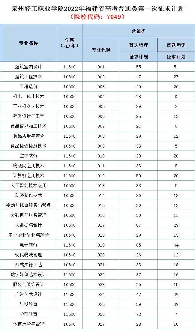 五、温馨提示1.2022年福建省普通高考高职(专科)批实行专业平行志愿投档录取模式,想就读泉州轻工职业学院,建议从第一志愿开始填报我校,同时依据专业喜爱程度,多填报几个我校的不同专业,录取专业不满意来校可以申请转专业。