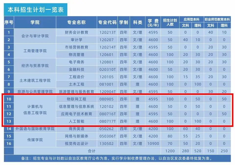 二、办学条件突出。学院设有1平台、2基地、3中心、17实验室:1平台(广西新能源汽车监测平台)、2基地(全国物联网技术应用专业人才实训基地、全国农村信息化应用人才实训基地)、3中心(人工智能教育实验实训中心、电子信息技术实验实训中心、广西船联网工程技术研究中心)、17实验室(人工智能教育实验室、物联网综合实训室等17个实验室),实践教学条件达到国内同类专业先进水平。学院与校企合作企业建立了10多个与专业相关的产教融合、协同育人校外实践基地,为生产实习和毕业实习提供良好的场地和条件。