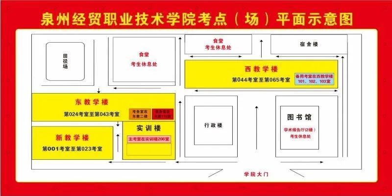 市内可搭乘:k2、k307、k702、34、45、305路公交到泉州医高专站下,由西大门进入考场。