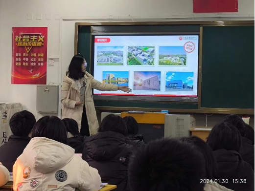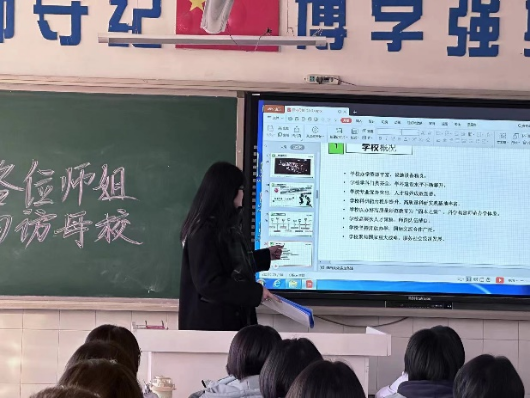 2024年1月 28 日,7名正中实验中学宣讲团成员回访了自己的高中母校,为母校师生们讲述天师大故事,传递天师大声音。