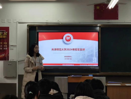 宣讲中,成员们依次介绍了天津市的历史文化和天师大的百年历史、学科建设、校园生活等,让同学们更加全面地了解我们学校。