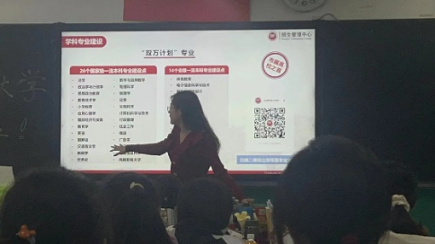 团队首先播放了两段宣传片,展示了学校的校园环境、教学设施、师资力量等各方面的优势,成功吸引了同学们的兴趣。