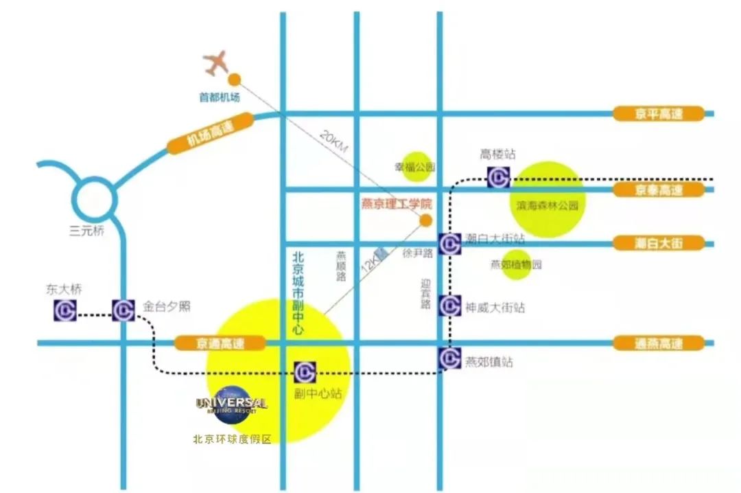 学校位于京津冀协同发展先行示范区、北京城市副中心燕郊组团,距天安门仅38公里,坐拥北京城市副中心、环球影城的优质资源,环首都、京津冀、环渤海三大经济圈核心区位。