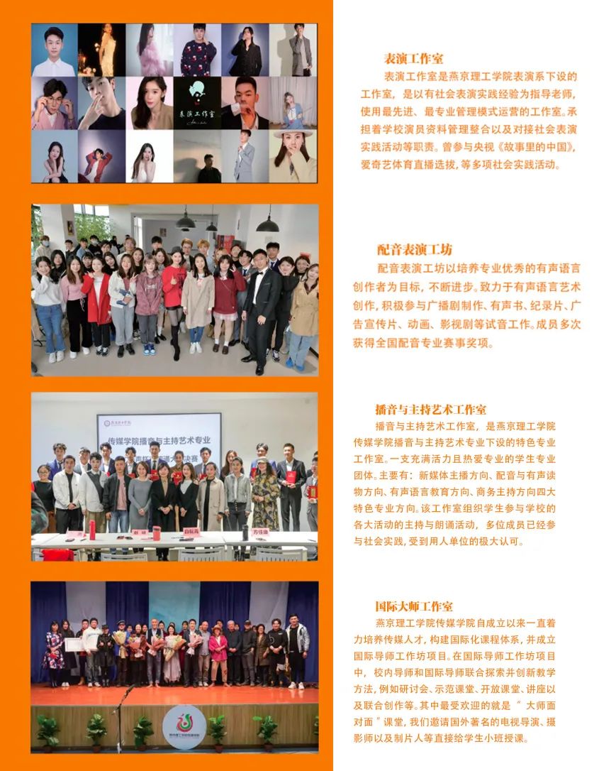 专业结合现代影视专业发展前沿,突出学生的实践能力培养,坚持理论与实践相结合,凝练专业特色,已经成为了燕京理工学院传媒学院品牌专业之一。该专业拥有一支结构合理、朝气蓬勃、学术水平和综合素质较高的师资队伍。主要培养具有较高文学与艺术修养,数量掌握现代表演的基本技能,具有创新精神和国际视野,能够运用表演艺术的内外部技巧独立创造舞台银幕形象的应用型人才。传媒学院有传媒学院有多所海外合作高校,辅以本说直通培养项目,为学生海外深造实现无缝对接。