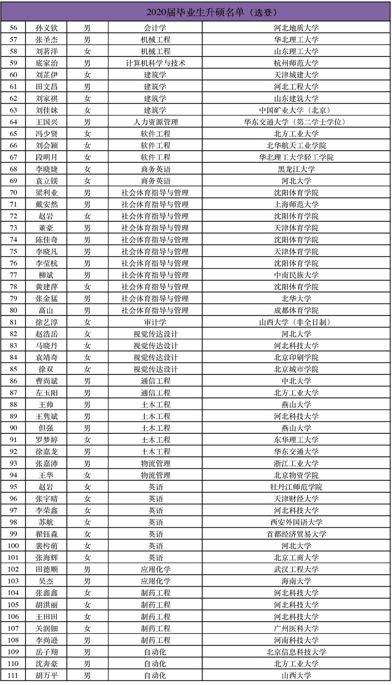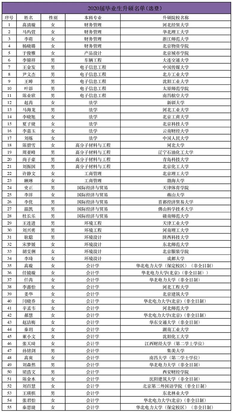 2020届国内升硕名单(选登)