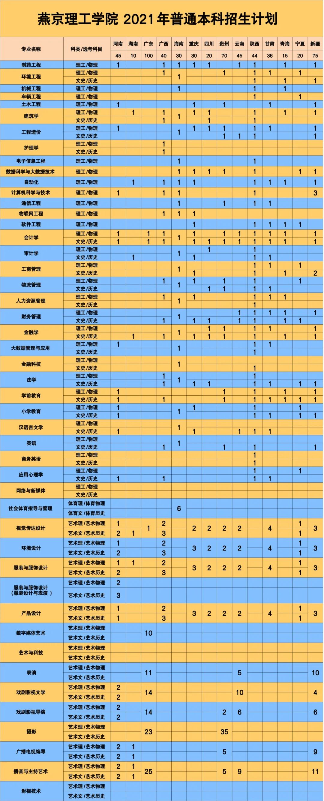 招生专业列表