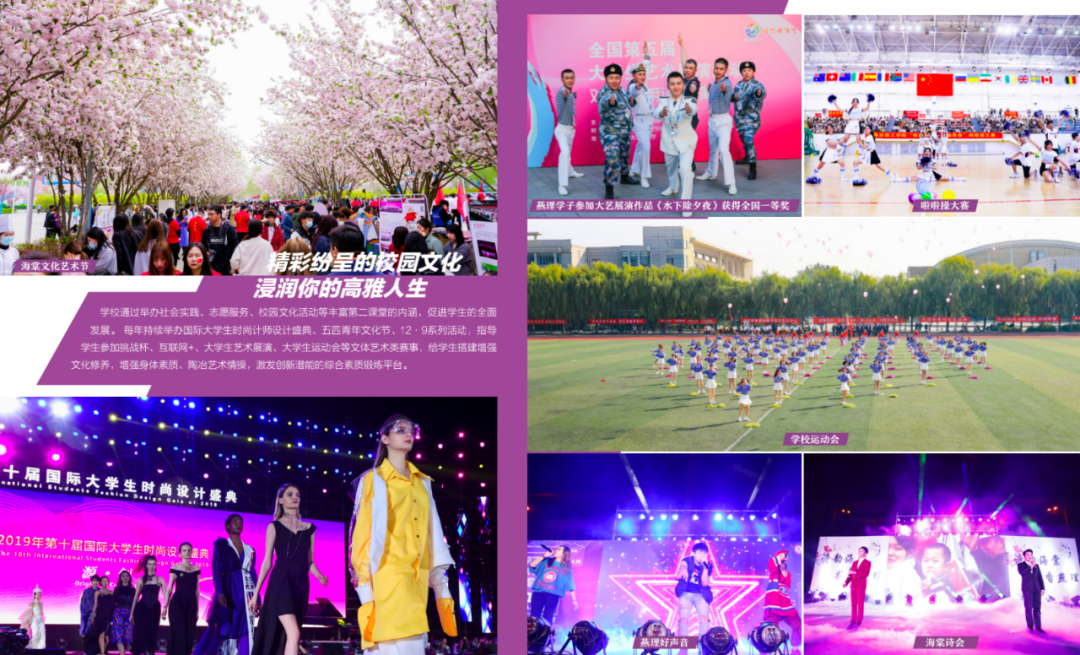 学校位于京津冀协同发展先行示范区、北京城市副中心燕郊组团,距天安门仅38公里,坐拥北京城市副中心、环球影城的优质资源,环首都、京津冀、环渤海三大经济圈核心区位。学校置身政治、经济、文化沃土,校园体验与众不同,培育了学生更加广阔和开放的视野,校园文化活力全面释放,平南支教支农路、感恩教育、千人进社区成为省内外有影响力的品牌教育活动,国际大学生时尚设计盛典成为具有全球影响力和权威性的时尚设计类专业赛事。