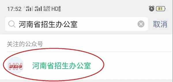 方法二:微信搜索“河南省招生办公室”微信公众号并关注