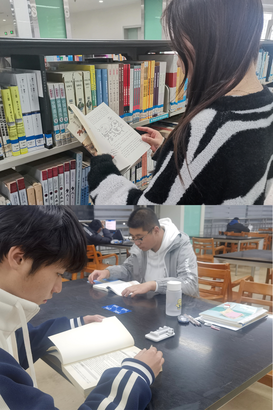 ▲在图书馆认真借阅专业书籍的同学们▲