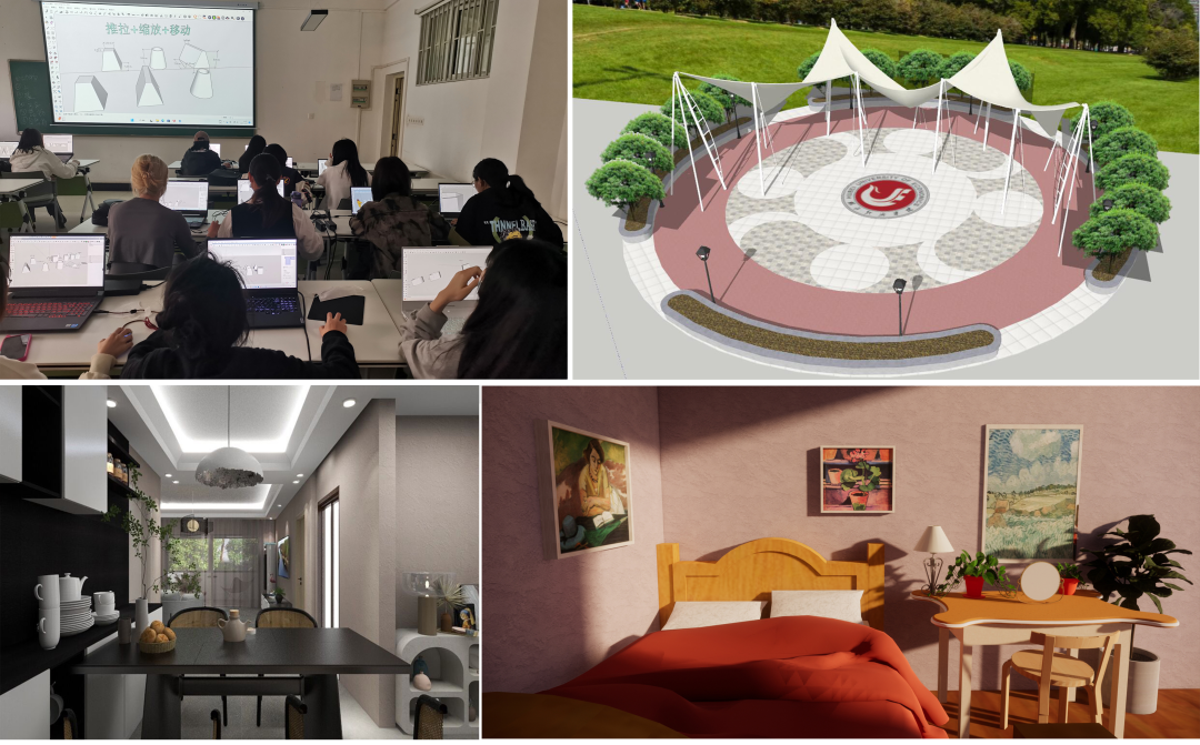 ▲三维软件教学现场与学生作业展示▲