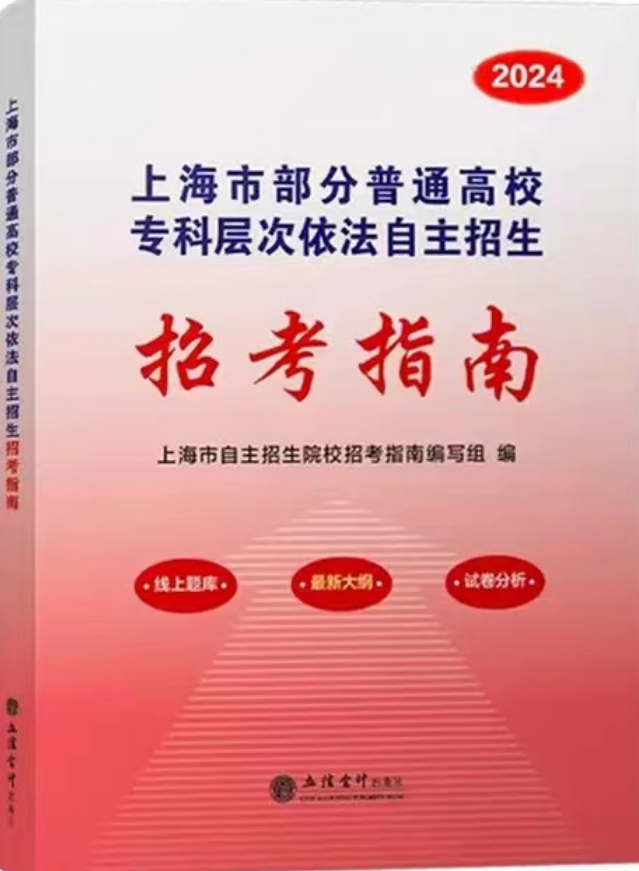 4.参考用书书名:《2024年上海市部分普通高校专科层次依法自主招生招考指南》(书号9787542975911,定价:55元)