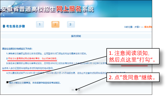 2. 仔细阅读报名须知,阅读完毕后点击左下角小方框“打勾”,然后点击“我同意”进入报名页面。