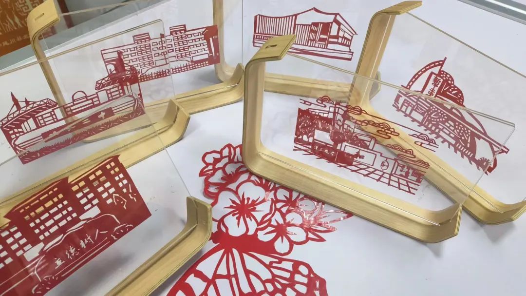 学院结合学院特色品牌剪纸坊,为每个走访中学设计纪念品,以中学标志性建筑物为设计元素,历时一个月准备特定纪念品。