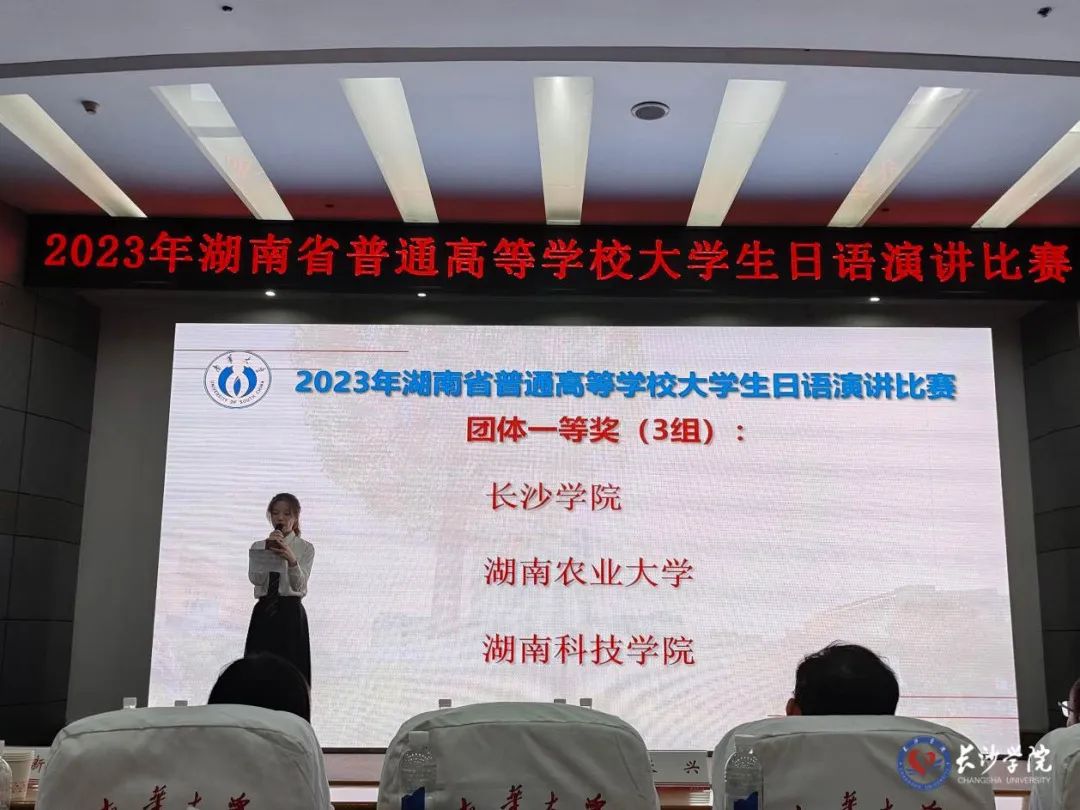 01湖南省普通高等学校大学生日语演讲比赛11月5日,由湖南省教育厅主办的2023年湖南省普通高等学校大学生日语演讲比赛在南华大学举行。来自中南大学、湖南大学、湖南师范大学等省内18所高校的52名选手展开激烈角逐,我校以总分第一的优异成绩获团体一等奖,这是2018年以来我校第四次获得该赛事的团体一等奖。