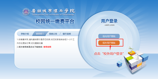 欢迎大家报名参加(1)考生需注册“校外用户登录”账号,点击网页http://cwc-zfpt.gcu.edu.cn/xysf/进入学校“统一缴费平台”,选择“校外用户登录”(考生需注册“校外用户登录”账号)