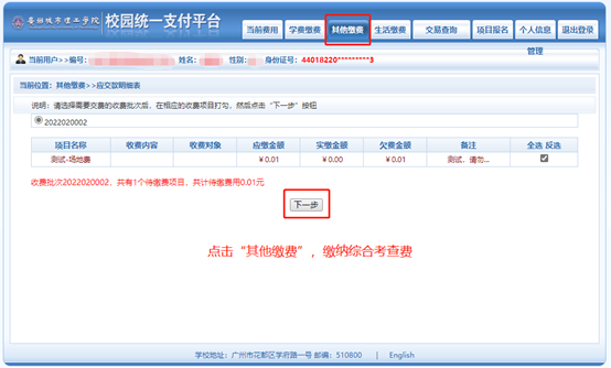 (5)进入统一缴费平台,选择“其他缴费”缴纳综合考查费40元/科