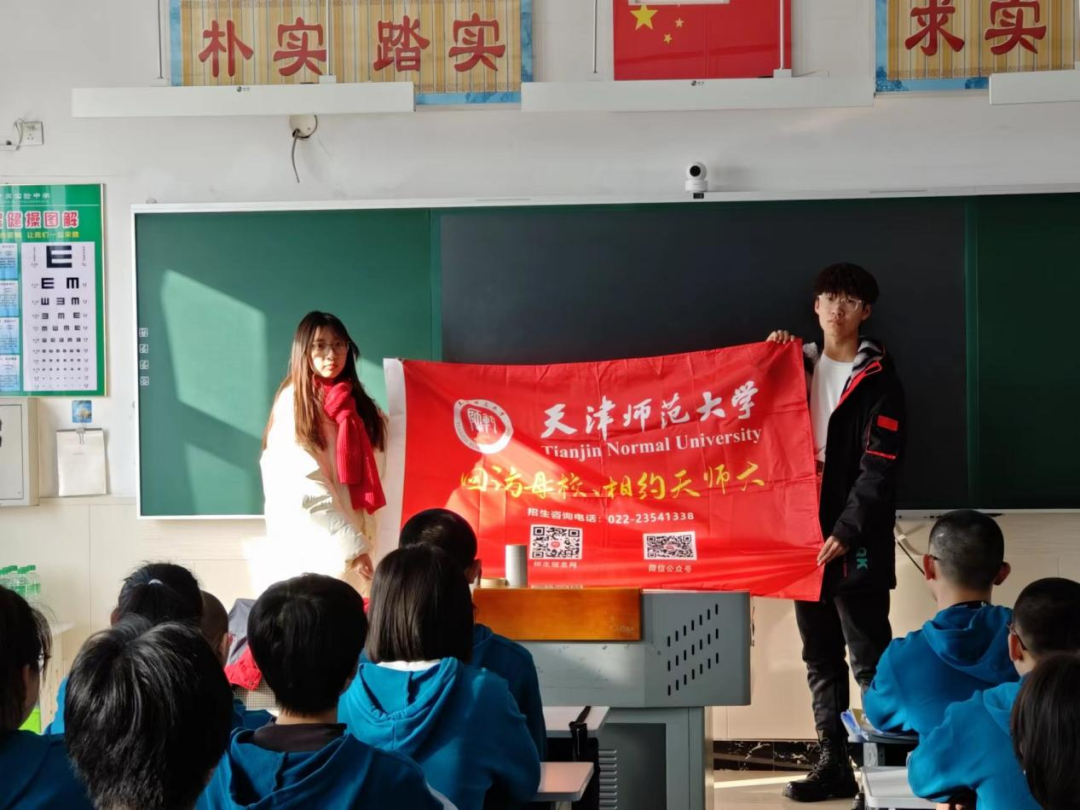 大庆实验中学团队在寒假期间,回访了高中母校,开展了“相约天师大”宣传活动。