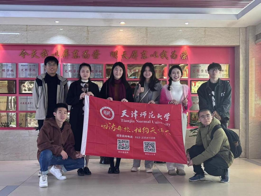 团队成员走在熟悉的校园路上,仿佛又回到了那些青春洋溢的日子。看着那些正在努力奋斗的学弟学妹们,不禁想起了自己曾经的拼搏与坚持。团队成员激励同学们要珍惜高中时光,努力学习,保持对大学的憧憬和期待,一起相约天师大。