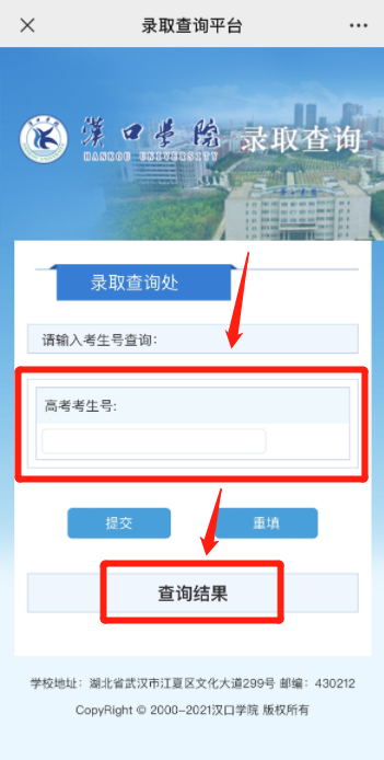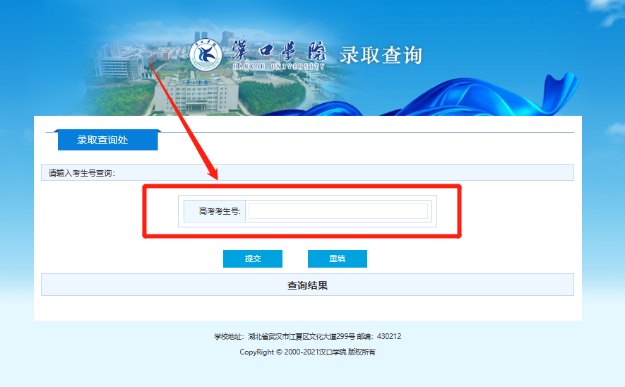 点击“高考录取查询”即可进入录取查询页面