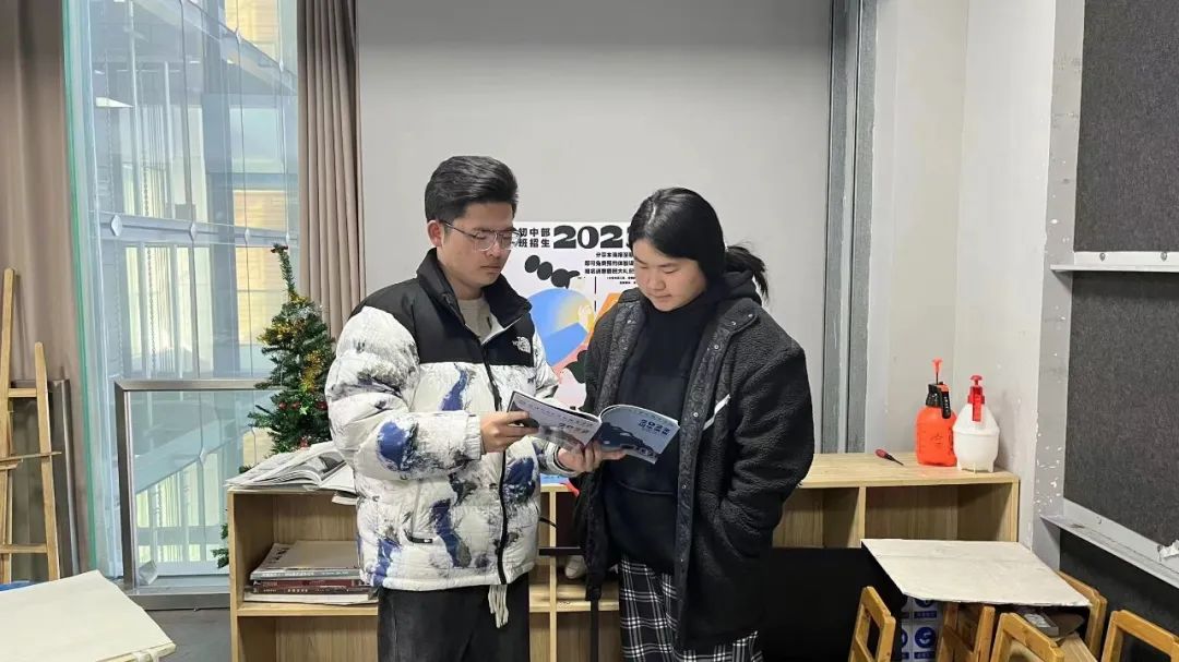 同时,他们还联系了高中艺术中心的老师,得到了学校的大力支持,在学校会议室内与同学们展开介绍,通过宣传手册,为同学们详细介绍了我校的专业内容、师资力量、食宿环境以及校园活动等内容,也与同学们进行一对一解答,帮助学弟学妹们更好的了解我校。