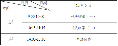 (2)播音与主持艺术类考试时间统一为2021年12月9日至11日,考生须在考试前3天开始登录“报名缴费指定系统”打印《专业考试证》。考生必须凭第二代居民身份证以及《专业考试证》在规定的时间和地点参加专业考试。考试地点及时间安排:①面试设在湖南师范大学新闻与传播学院进行;面试时间采用电脑随机编排。②笔试时间统一为12月11日上午8:30~9:30,开考15分钟(11日上午8∶45)后,考生不得进入考室,考生须在10日下午17时-18时期间前往考试地点熟悉笔试考场,但不能进入考室。面试时考生可化淡妆、穿生活装或正装,不得穿着各类演出服装、不得穿戴任何装饰物(如各类头饰、配饰等);不得在各类道具上加入装饰;舞蹈类才艺展示,考生可穿各类表演舞种的黑色训练服,不得在训练服上加入任何装饰;否则视为“以其他方式在答卷上标记信息”的行为,认定为考试违纪。(七)表演类(戏剧表演)1.考试项目及分值身高与形象50分、专业技能250分(演唱40分、台词70分、形体展示40分、表演100分),满分300分。2.考试地点及时间安排表演类(戏剧表演)专业考试于2021年11月29日至12月4日在湖南艺术职业学院(长沙市长沙县特立东路719号)统一进行。考生须在考试前3天开始登录“报名缴费指定系统”打印《专业考试证》。面试时间采用电脑随机编排。考生必须凭第二代居民身份证以及《专业考试证》在规定的时间和地点参加专业考试。(八)书法艺术和书法教育类1.考试科目及分值书法临摹(一)90分、书法临摹(二)90分、书法创作120分,满分300分。2.考试地点及时间安排书法艺术和书法教育类考试全省考生随机编排在长沙市内若干考点,具体考试地点安排见《专业考试证》。考生须在考试前3天开始登录“报名缴费指定系统”打印《专业考试证》,12月4日下午17时-18时期间考生可前往考试地点熟悉笔试考场,但不能进入考室。考生必须凭第二代居民身份证以及《专业考试证》在规定的时间和地点参加专业考试。考试时间具体安排如下:
