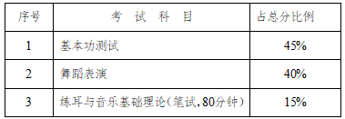 考生必须凭第二代居民身份证以及《专业考试证》在规定的时间和地点参加专业考试。考试地点及时间安排:①主科、视唱以及音乐教育专业和音乐表演专业面试设在湖南师范大学音乐学院(长沙市岳麓区麓山南路左家垅)进行,面试时间采用电脑随机编排。②练耳与音乐基础理论笔试统一安排在12月19日上午10∶00-11∶20,开考前15分钟(19日上午9∶45)后,考生不得进入考室;全省考生随机编排在长沙市内的若干考点,具体考试时间和考试地点安排见《专业考试证》,考生须在12月18日下午17时-18时期间前往考试地点熟悉笔试考场,但不能进入考室。③和声和作曲考试在湖南师范大学音乐学院进行,统一安排在12月20日;具体考试时间和地点安排见考生《专业考试证》;④声乐专业的钢琴伴奏为跨界钢琴伴奏;⑤考试所需的道具、乐器(钢琴除外)自备。2.职高音乐类职高音乐类考生直接参加普高音乐类考试,考试内容、要求、时间及地点等与普高音乐类相同,不再单独组织考试。(二)舞蹈类1.考试科目及分值 舞蹈类专业考试成绩总分为300分,具体考试科目及分值:
