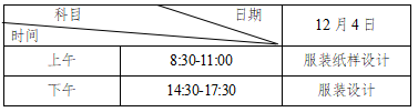(3)考点及考点所在市(州)招生考试机构须按照高考保密要求选派相关考务人员和工作人员于12月2日下午到我院报到领取相关考务资料。考试结束后,各考点须按照我院的时间安排将有关考务资料送达指定地点。2.职高美术类职高美术类考生直接参加普高美术类考试,考试内容、要求、时间及考点安排等与普高美术类相同,不再单独组织考试。(四)服装类(职高)1.考试科目及分值服装设计140分(考试时量180分钟)、服装纸样设计140分(考试时量150分钟)、服装工艺110分(考试时量120分钟),满分390分。2.考试地点及时间安排服装类(职高)专业考试于2021年12月4日至8日在湖南师范大学统一进行。考生须在考试前3天开始登录“报名缴费指定系统”打印《专业考试证》,12月3日下午17时-18时期间前往考试地点熟悉笔试考场,但不能进入考室。考生必须凭第二代居民身份证以及《专业考试证》在规定的时间和地点参加专业考试。考试所需绘画工具、剪裁工具等自备。服装工艺考试具体时间、地点详细安排由考点另行公布,服装设计、服装纸样设计考试时间统一安排如下: