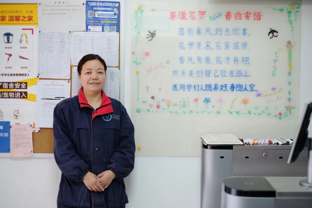 楼栋的同学们,在朱阿姨心中就像自己的孩子一样。看着他们怀着憧憬来到电子科大,她总想让同学们在宿舍里感到舒适自如,恨不得解决他们在宿舍生活中遇到的所有问题,能够心无旁骛地专心学习。