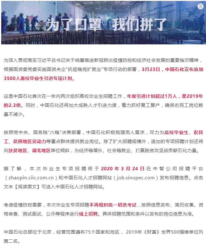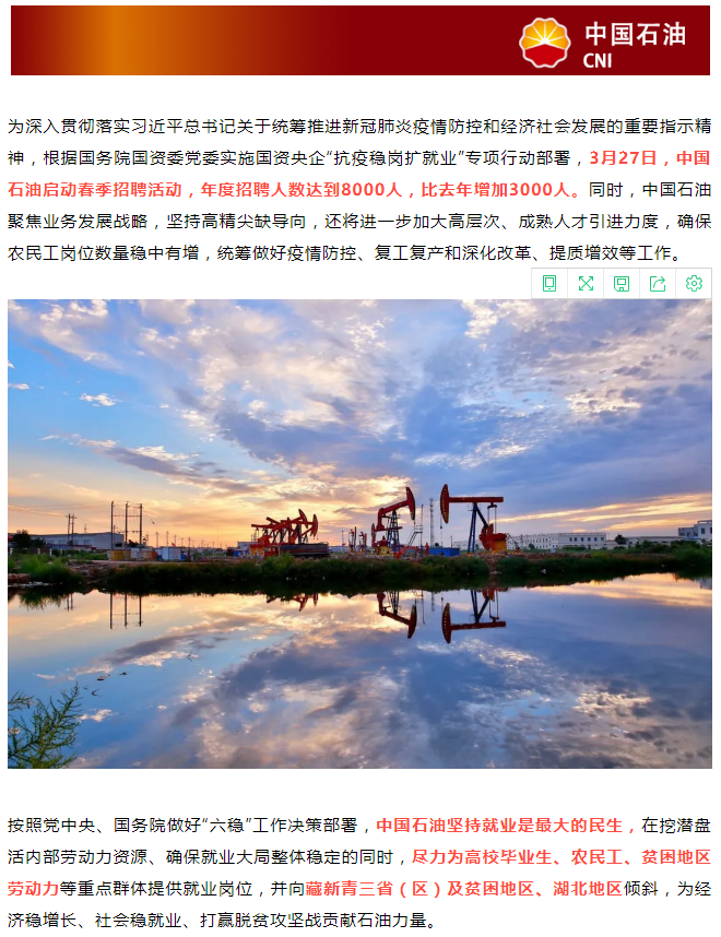抗疫稳岗扩就业,中国石油扩招三千人!