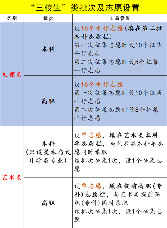 4.同时段内不同志愿栏院校的征集志愿同一时间填报,投档按先后次序一次投完。同时段内涉及艺术、体育、文理多个科类的,如无特殊规定,按艺术、体育、文理顺序投档。艺术类平行志愿按