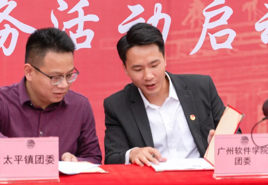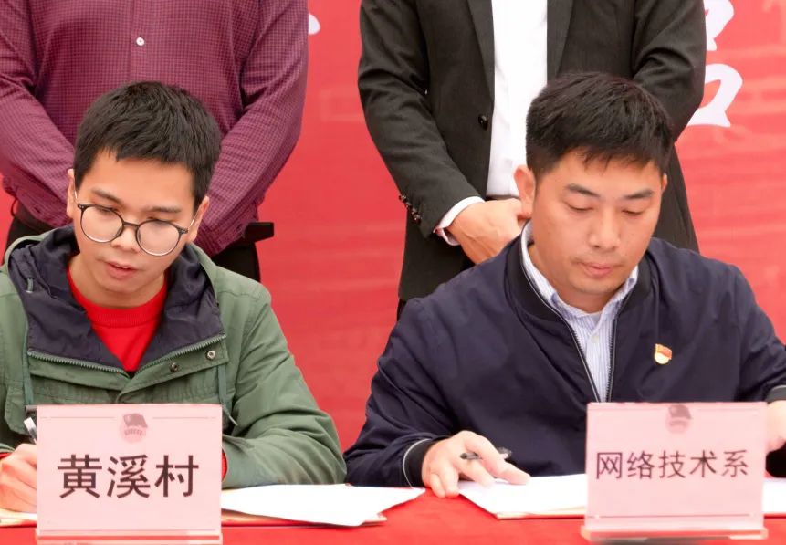 为了有效发挥校地共青团“搭桥牵线”作用,做到精准共建、订单式帮扶,让青年学子深入基层一线开展专业实践活动,太平镇团委和学校团委、网络技术系团委和黄溪村在启动仪式现场进行了“百千万工程”突击队行动签约。