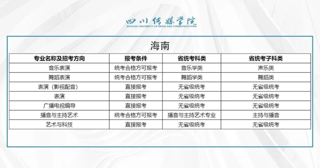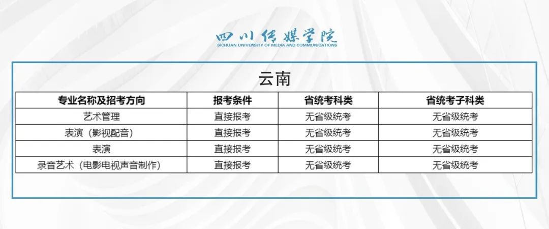 3.艺术类省级统考未涵盖的校考专业,考生可直接报名参加学校艺术类专业校考;