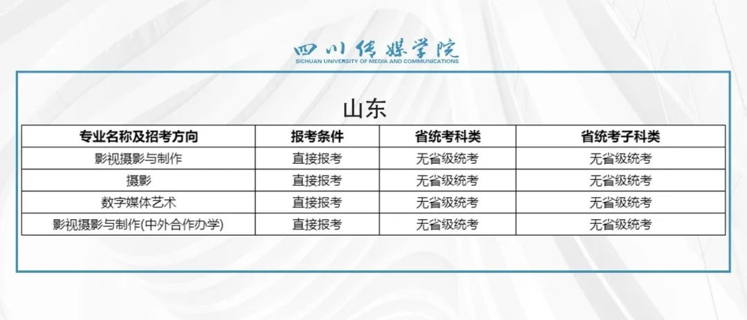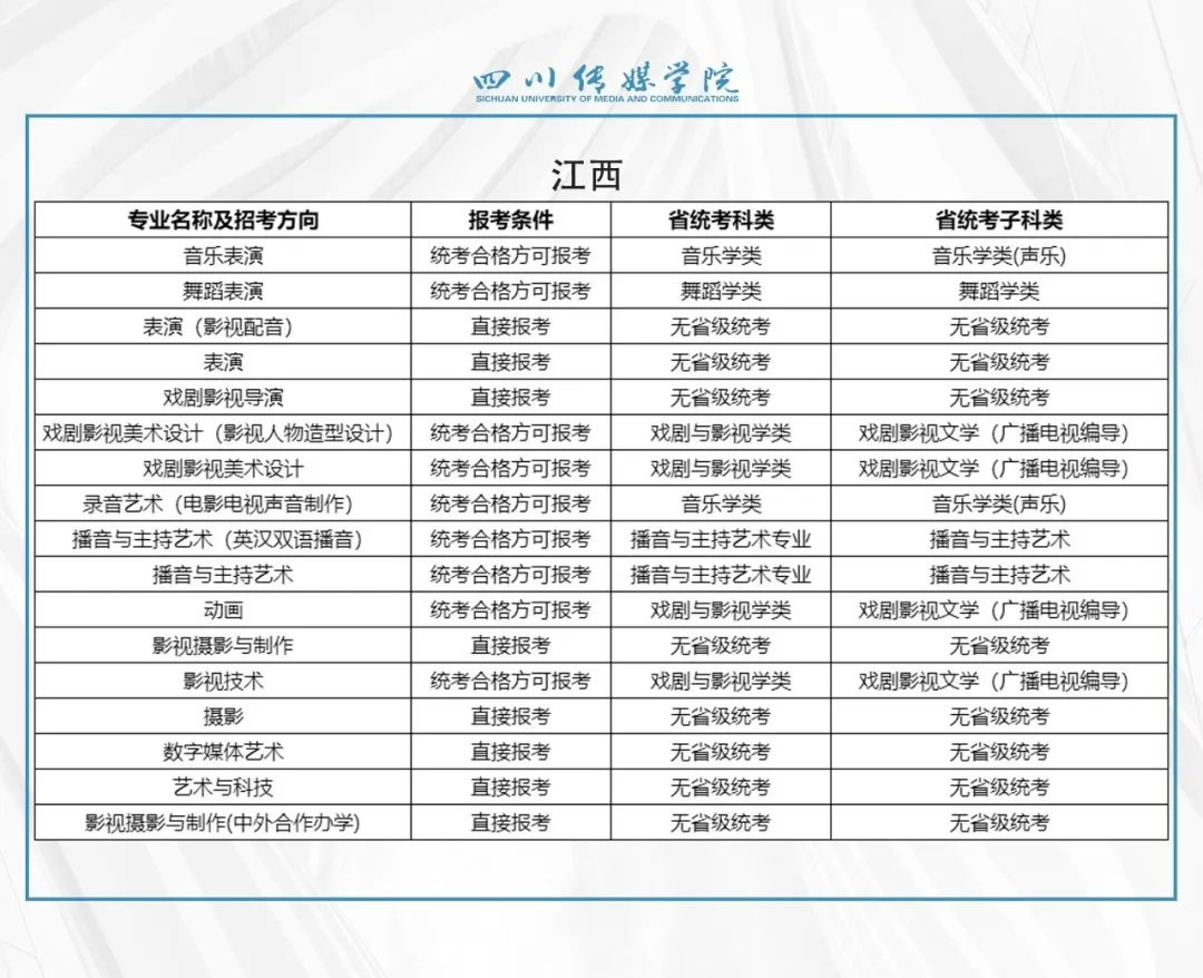 2.若同一省份同一专业及招考方向对应多个省级统考子科类时,考生须至少具备其中一个子科类的省级统考合格成绩,否则校考报名及专业考试成绩无效;