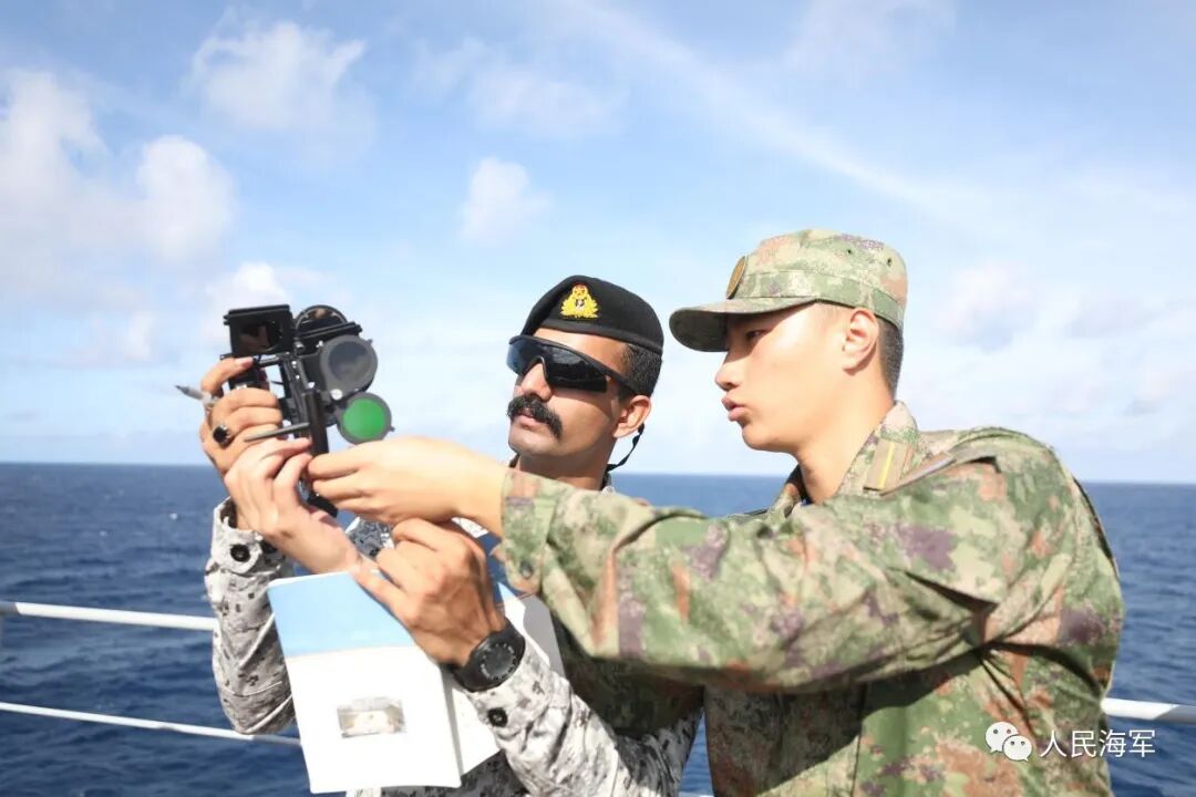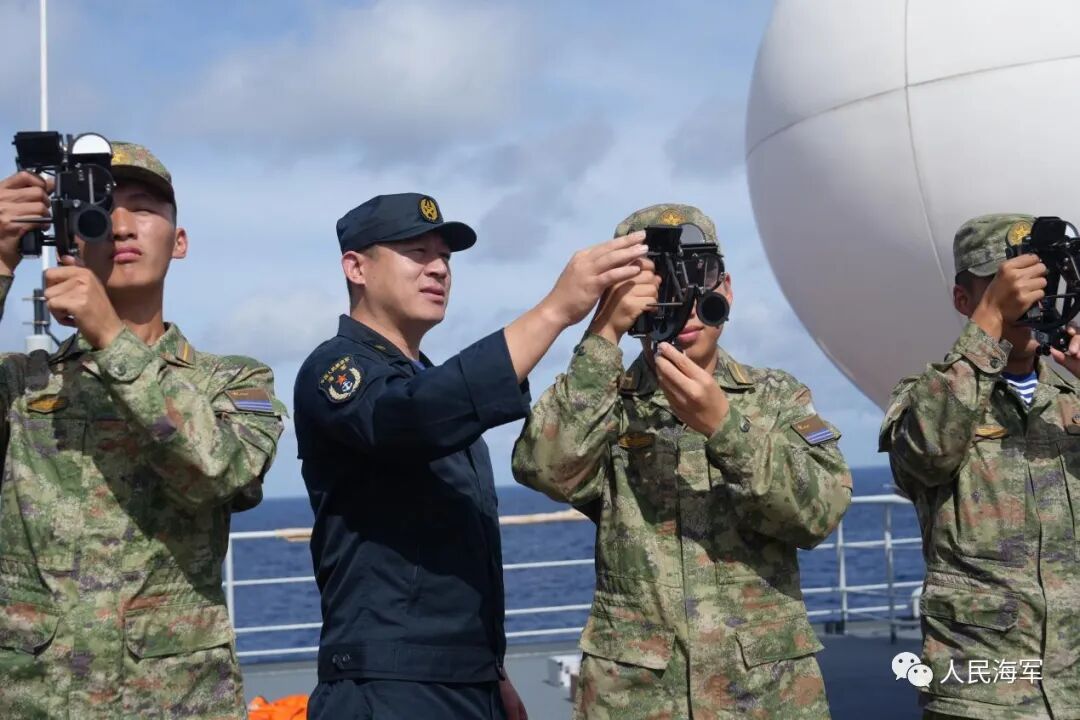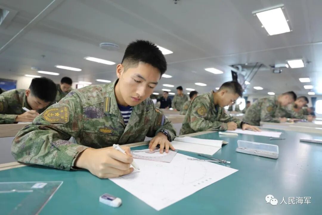 从9月4日任务部队解缆启航到凯旋归来这一路,他们航经2大洋覆盖9个海区,穿越6个海峡跨越54个纬度、74个经度、5个时区总航程14000余海里总航时达900余小时实现了多海域、全航段兵力安全▲学员在飞行甲板测太阳高度