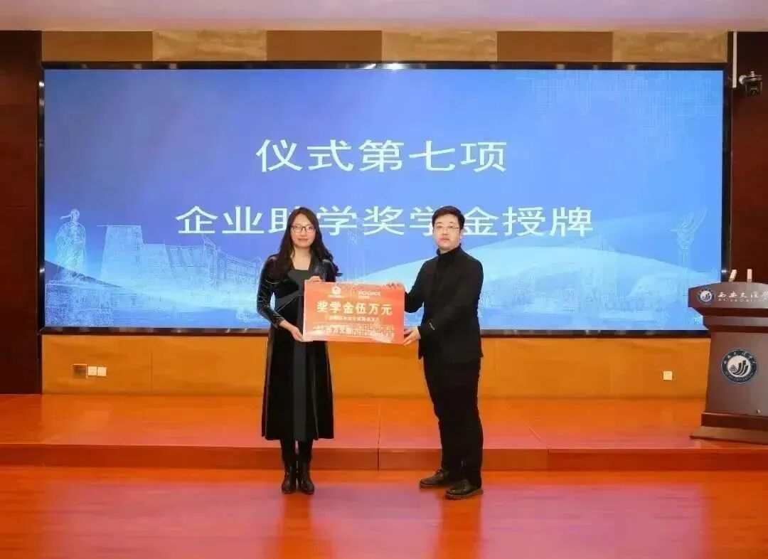 会上,汇报了产业学院共建方案,双方代表签订了有关产业学院框架、课题开发以及企业定制班三个协议,进行了企业助学金授牌。按照协议,企业每年向学校提供5万元,建设期内不低于25万元的企业奖学金。
