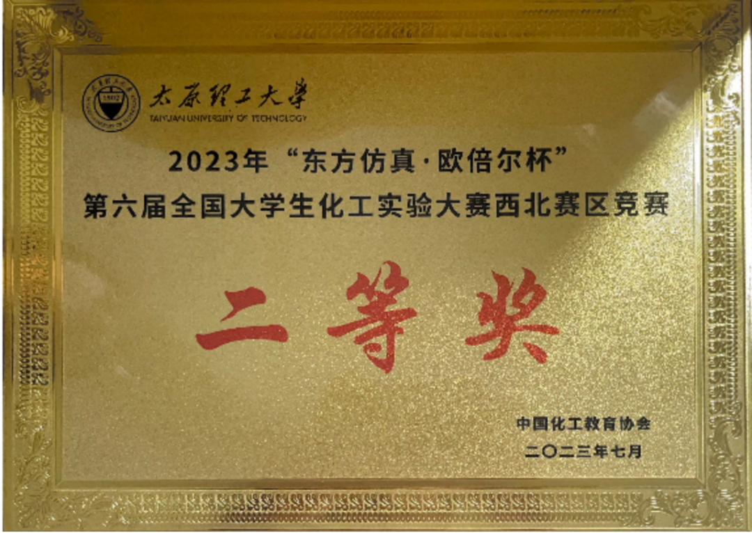 近日,由教育部高等学校化工类专业教学指导委员会、中国化工教育协会主办,太原理工大学承办的2023年“东方仿真·欧倍尔”杯第六届全国大学生化工实验大赛西北赛区竞赛在山西太原举行。来自西北地区39所高校的78支队伍同场竞技。我校化学工程学院学生梁凤仪、王菲、张勇组成的“星启战队”和张文君、张哲滔、刘狄笙组成的“这道题做的队”两支队伍分获特等奖和二等奖。