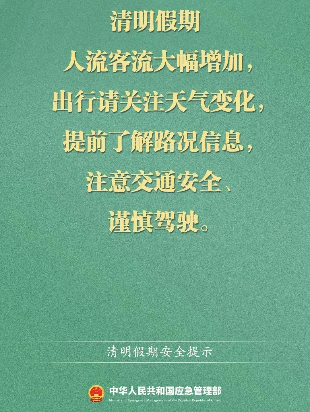 出行前要密切关注文化旅游、卫生健康、气象等部门发布的旅行提示和天气信息,关注目的地天气变化、道路交通管控等情况,加强风险评估,合理规划线路,注意交通安全,警惕灾害性天气。踏青时,注意预防花粉过敏,拒绝危险举动,提高安全意识,确保人身安全。