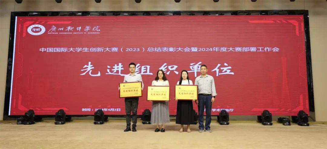 袁志为先进工作者、先进组织单位奖颁奖并作2024年度大赛部署工作讲话。他对2023年度大赛组织动员情况、项目培育工作及取得的赛事成绩表示高度肯定。他指出,2024年度中国国际大学生创新大赛即将拉开帷幕,这既是新的起点,亦是新的挑战。我校须以更高的标准、更严的要求、更实的作风精心筹备大赛的各项准备工作,并就此提出几点工作要求,一是精准把握大赛文件导向;二是完善项目遴选培育机制;三是优化部门协同模式。各单位要争取进一步完善广软创新创业教育培孵体系,深入推进专创融合、科创融汇,以专业教育与创新创业教育的有机结合为引领,促进产学研深度融合。