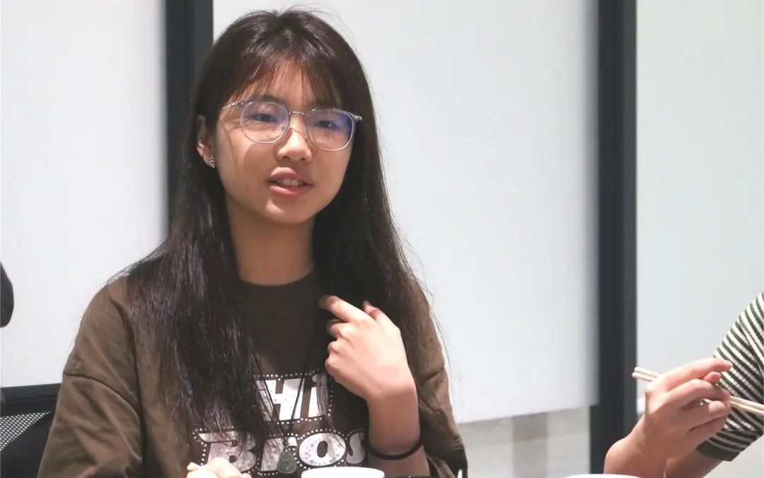 午餐会现场氛围轻松愉悦,学生代表积极发言,围绕专业学习、