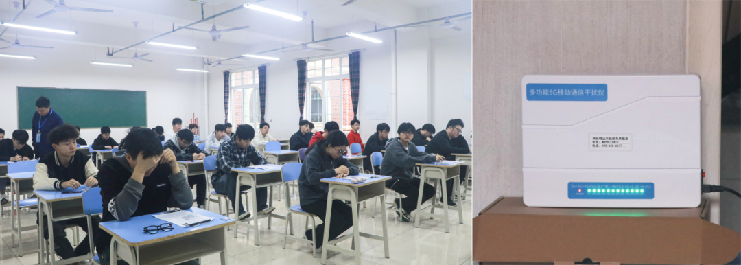 考生在全程视频监控、无线电信号屏蔽全覆盖的标准化考场参考