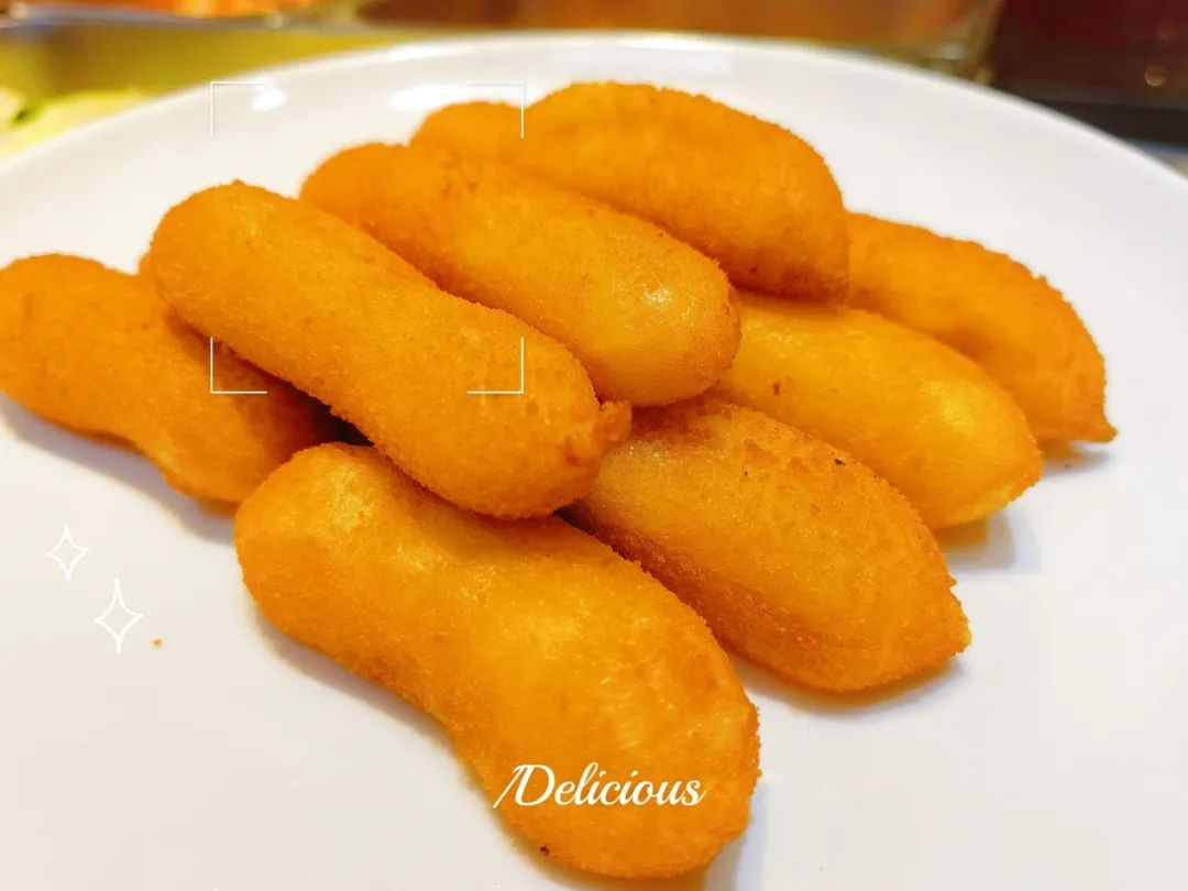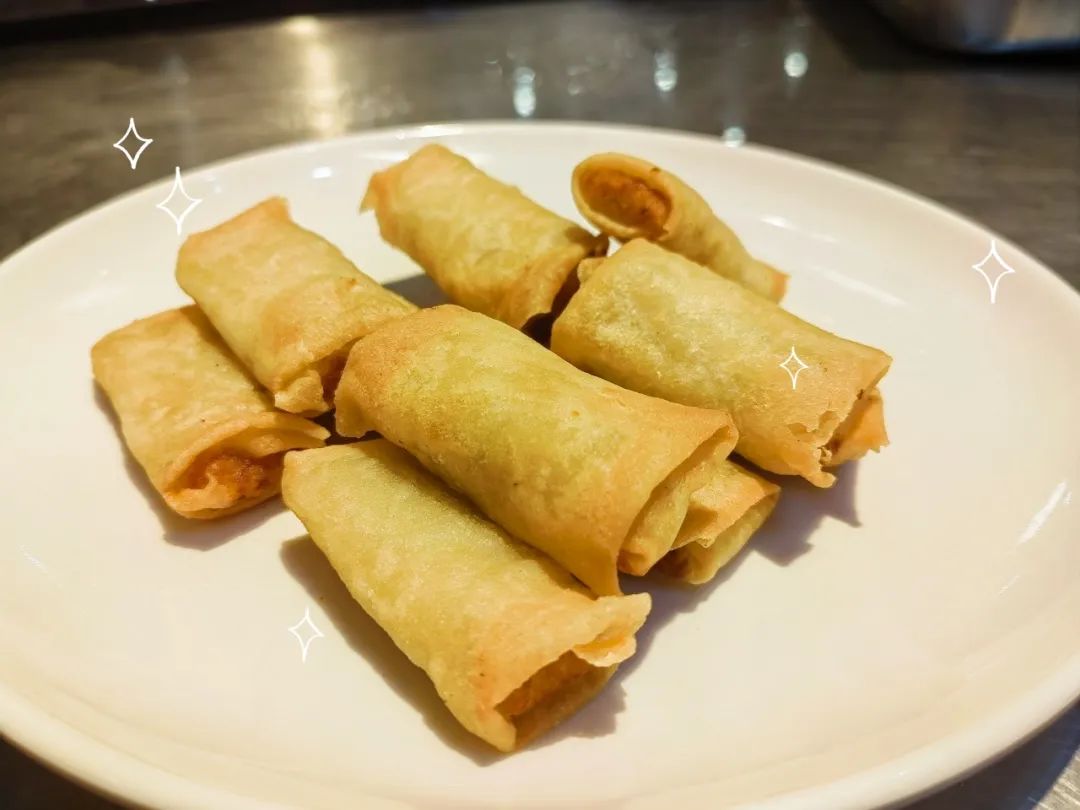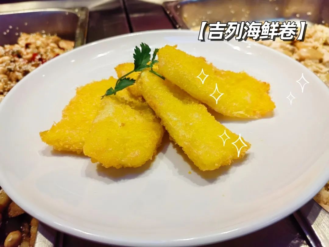 脆炸吉列海鲜卷,食用威化皮下包裹着由虾仁、各类鲜蔬等食材调配而成的新鲜馅料,裹上鸡蛋液,蘸上面包糠,经高温油炸,金黄酥脆,多料美味,赶紧来,趁热吃!